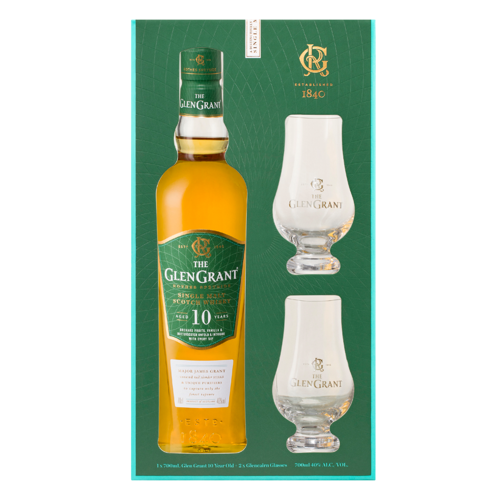 Glen Grant 10yo Single Malt Scotch Whisky Gift Set w/ 2 Glasses (700ml, 40% ABV)